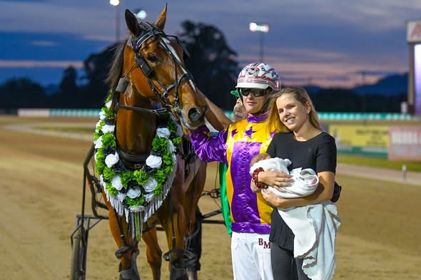 It was a huge night for Bailey McDonough, it was his first Group 1 success as a trainer and second as a driver and just nine days ago he became a proud father to daughter Clara and his partner Sofia. It was a clearly emotional occasion for McDonough.