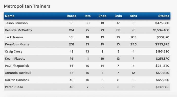Grimson is currently fourth on the State Trainers’ Premiership with 68 wins.