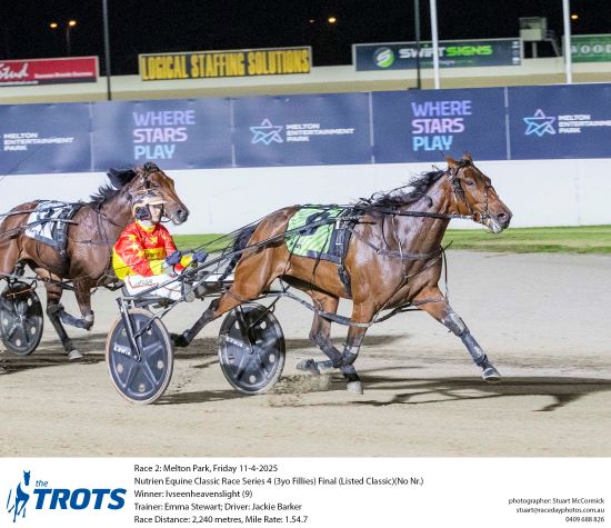Outstanding filly Iveseenheavenslight (Bettors Delight) showed her class with a strong win in the Listed $125,000 Nutrien Equine Classic final for three year old fillies at Melton on Friday night.