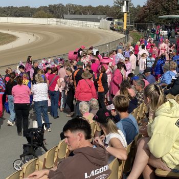 In ideal autumn conditions, hundreds gathered at the Shepparton Harness Racing Club to enjoy a family-friendly day featuring dining, marquees, entertainment for kids and of course, action on the track — all under a sea of pink.