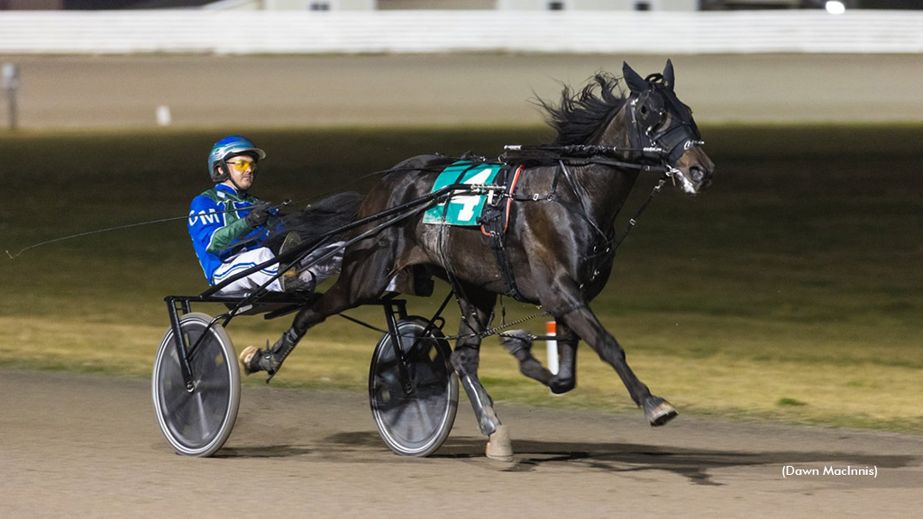 The other $13,000 sophomore division was another MacDonald family victory as Ken MacDonald was in the race bike for trainer Clare behind the red-hot West River Jet ($2.10), who controlled every step in 1:58.4 to keep a flawless top-three résumé intact this season. Supreme Rockette (McGuigan) chased throughout for the deuce with Dusty Lane Gus (Merner) third.