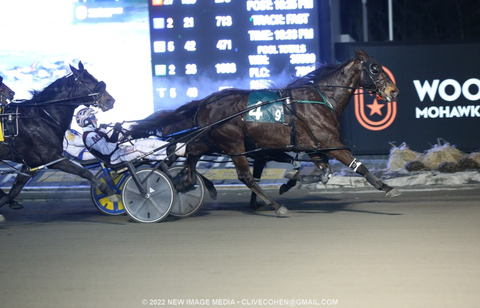 Wheels On Fire (Somebeachsomewhere) prevailed in a stretch duel to win the Woodbine Mohawk Park $34,000 Preferred Pace for the first time this season and become harness racing’s newest millionaire.