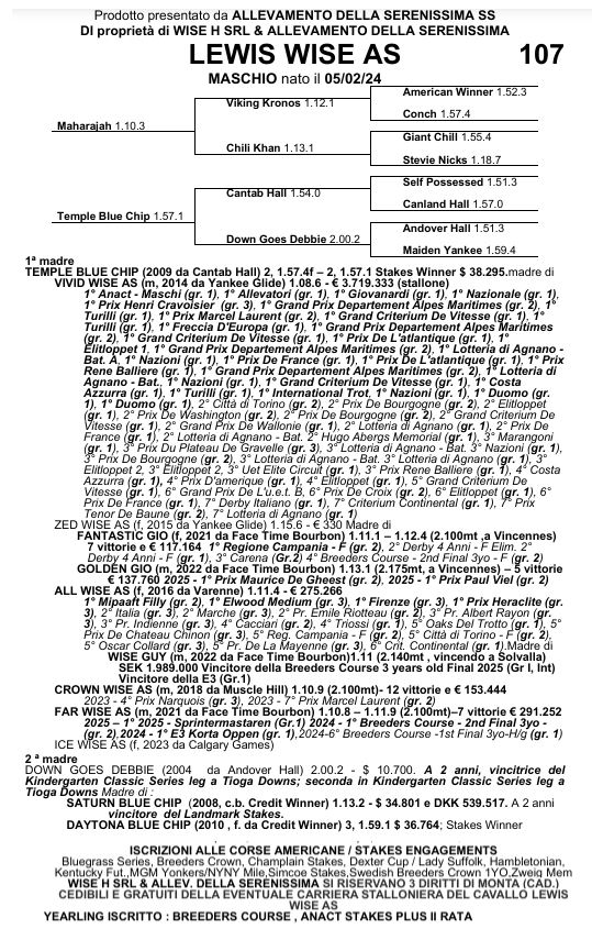 - Lot 107, Lewis Wise As (male, Maharajah-Temple Blue Chip) for 170,000€to Karin Walter Mommert, this colt a half brother to Vivid Wise As;