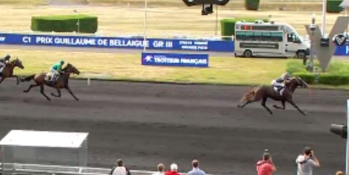 At Paris-Vincennes this day the monte Gr. III Prix Guillaume de Bellaigue (purse 90,000€, 2700 meters, eight international starters ages 6-11) saw 6.5/1 odds Jeroboam d’Erable (6m Prodigious-Amiraute-Prince Gede) score handily timed in 1.13.0kr.