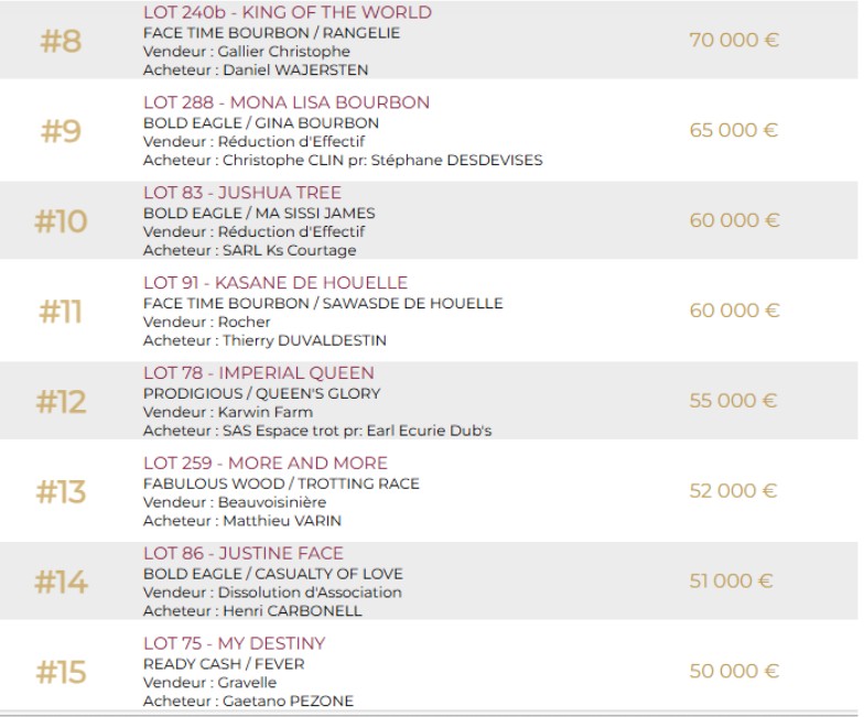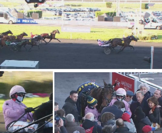Second was pacesetter 4.2/1 Horchestro (9g Sam Bourbon-Alisma du  Corta) handled by Eric Raffin for G.R .Huguet training for Gerald  Dambach. JPD  bred this one. Home third  was 56/1 Hulysse Gigeo (9g Reve de Beylev) with J.W.Hallais up, the trainer  and owner. He raced with shoes. Working Class Hero (7m Village Mystic) was fourth at 5.6/1 for Mathieu Mottier and trainer Jorgen Westholm, followed  by 10/1 Jango Vici (7m Dragon des Racques) with Francois Lagadeuc up for trainer Antonio Ripoll Rigo.