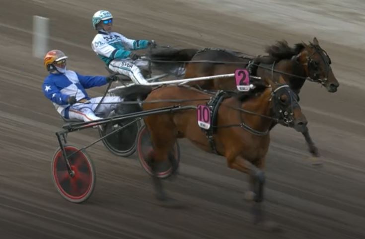 Home second was the very game Don Fanucci Zet (9m Hard Livin-Kissed By The West-Western Terror) at 8.55/1 odds for Paul Philippe Ploquin and Daniel Reden/Stall Zet that won elimination one and battled Mellby Jinx in the early stages of this final with the opening 500 in 1.07kr.