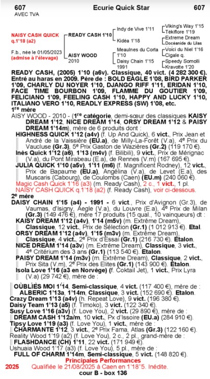 607, Naisy Cash Quick (2f Ready Cash-Aisy Wood-Meaulnes du Corta-Daisy Chain) for 202,000€ to Elodie Chenet and Trotting Bloodstock: