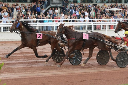Three lengths back was 2.8/1 Idao de Tillard (7m Severino-America de Tillard) with Clement Duvaldestin driving for trainer Thierry Duvaldestin and Cyril Sevestre. The 20/1 Inmarosa (7g Amiral Sacha-Varkava) was fourth with Leo Abrivard aboard for trainer Laurent Cl. Abriavrd. These four were followed by 116/1 Happy Danica, 11/1 Iguski Sautonne, Staro Mack Crowe, Elvis du Vallon and Cicero Noa.