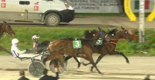The FR invader Jabalpur (6m Booster Winner-Sliema-Infant du Bossis) was a game front end victory in today’s Premio Della Nazioni (Gr I, Purse 220,000€, 2100 meters autostart) at Milano, ITY. Off at 4.63/1odds the winner scored for the 12th time in 43 career starts with Gabriele Gelormini driving for Tramontom Srl and trainer Alain Chavatte.