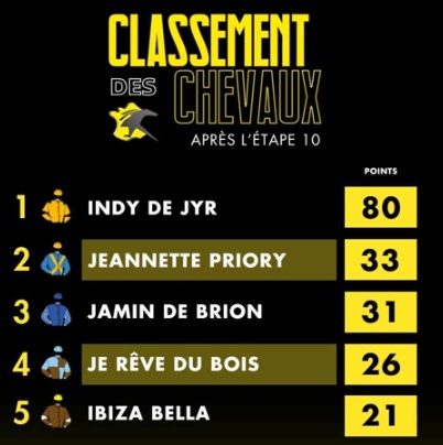 Helios Si (8g Infant du Bossis) at 11/1 and 9/1 odds favorite and 25 meter handicapped Indu de Jyr (7g Theo Josselyn) completed the top five.