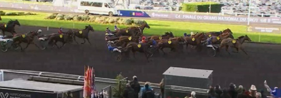 Finale du Grand National du Trot (Gr II, purse 150,000€, 2850 meters distance handicap, 18 starters ages 5-10) today at Paris-Vincennes produced a 1.12.4kr timed victory for the 3.8/1 odds Jingle du Pont (6g Niky-Tina du Pont)for driver/trainer Nicolas Bazire.