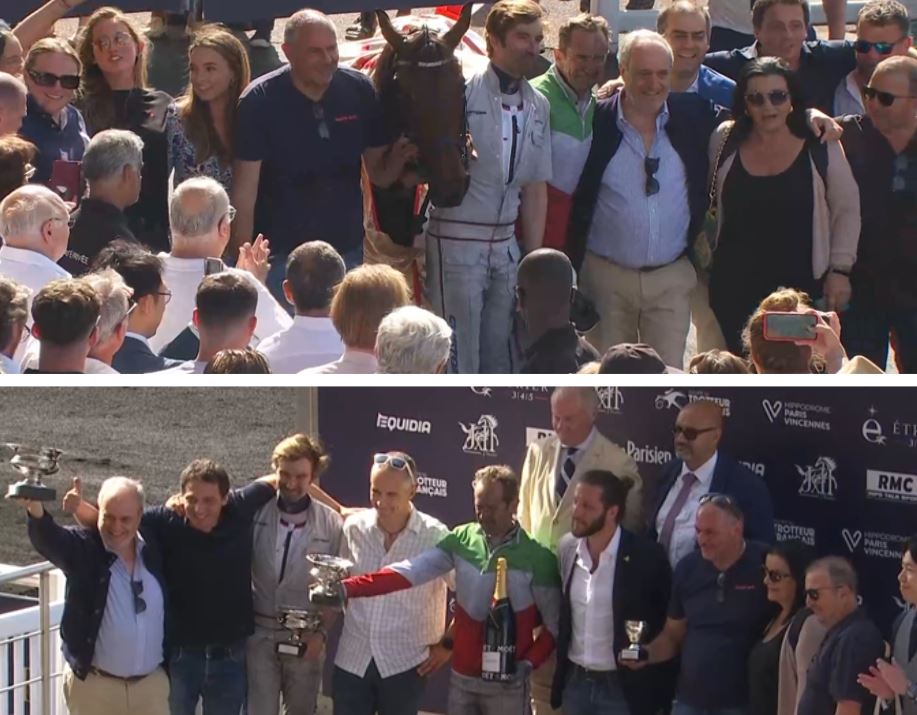 The legendary Jean Michel Bazire (“JMB”) doubled today on Champions Day at Vincennes first taking the Prix Albert Viel (Gr. I, purse 200,000€, 2700 meters, 15 starters age three) with 1.12.8kr timed 4.9/1 odds Mille Etoiles (3f Prodigious-Electra Green) that Nicolas Bazire trains.