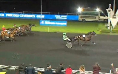 The 4.2/1 odds Implora Mauzun (7f Django Riff-Adeline Mauzun-Love You) was next for driver Jean Michel Bazire, trainer J.P. Ducher and owner Adeline De Senneville. The 14/1 odds Ialto d’Hertals (7g Alto de Viette-Sonate de Flore-Derby du Gite) was third driven by Theo Duvaldestin, Stal d’Atom and trainer Thierry Duvaldestin.