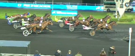 Yesterday at Paris-Vincennes the Prix d’Arcachon (purse 75,000€, 2100 meters autostart,10 starters ages 7-10) went to 3.7/1 odds In Red (7g Carat Williams-Belisise) timed in 1.11.3kr with Gabriele Gelormini aboard.