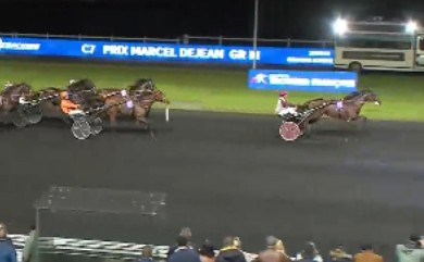 Two year olds were onstage this day at Paris-Vincennnes starting with the Prix Marcel Dejean (Gr III, purse 54,000€, 2200cmeters, eight two year old harness racing filly starters).