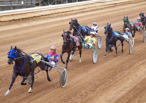 Last night driver Ricky May eased the Brendon Hill trained Rockingood off the gate and took the lead going into the first bend.