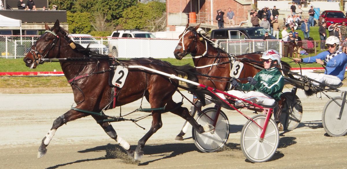 Dalgety positioned his filly in the trail with Seaside Brucie taking up the running. Dalgety presented Lizzie Borden at the top of the straight and she sprinted home well, to win from a late finishing Indulge Me with Seaside Brucie who stepped out of one of his hopples finishing third.