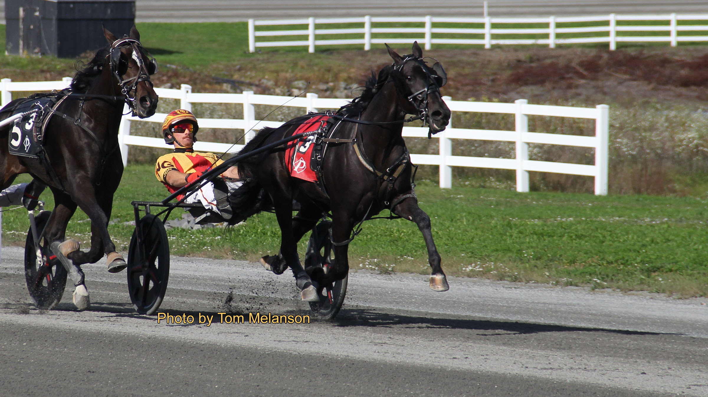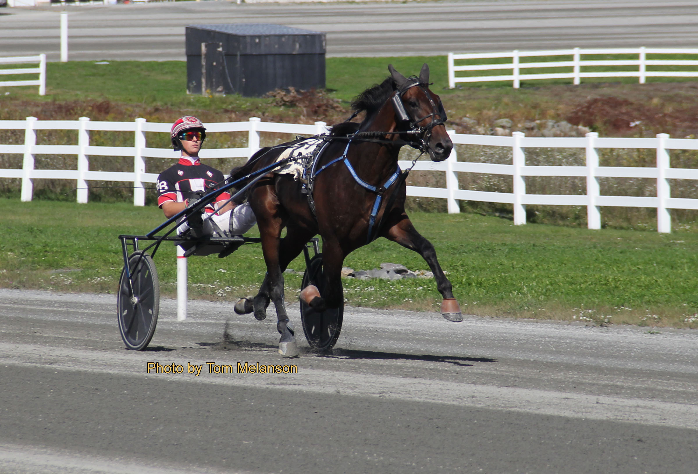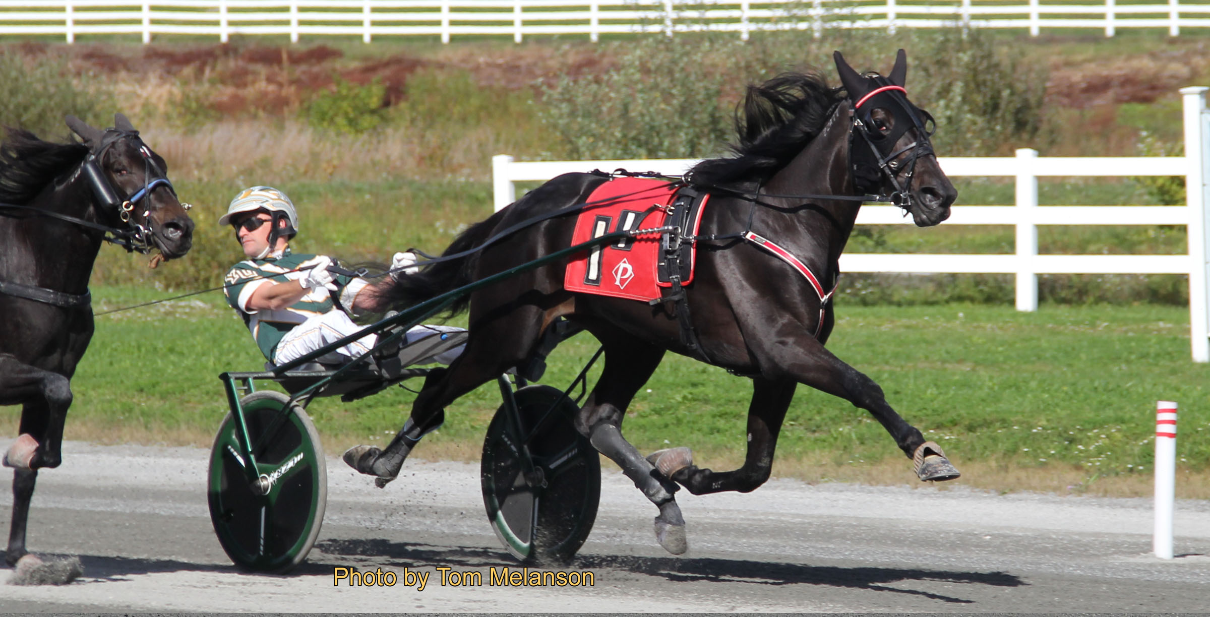 Stablemates Mr. McTygue (Brett Beckwith) and Manador (Yannick Gingras) argued for the lead with Manador taking that position past the :27.4 quarter. The race stayed single file to the half in :57.1 but then Beantown Dragon (Nick Graffam) came first-up and pushed Manador at three-quarters and then into the last turn. As the race approached the wire, three horses were closing in on Manador, but Manador refused to lose and hung on by a neck in 1.55, which was a new lifetime mark.