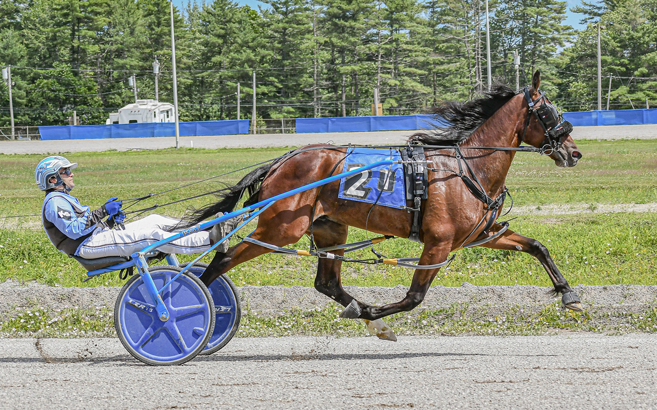 CUMBERLAND, ME – Maine’s fresh crop of 2-year-old pacing colts and geldings put on a harness racing show during Friday’s (July 4) Independence Day card at Cumberland Raceway, opening the program with two $10,500 divisions of the Maine Sires Stakes.