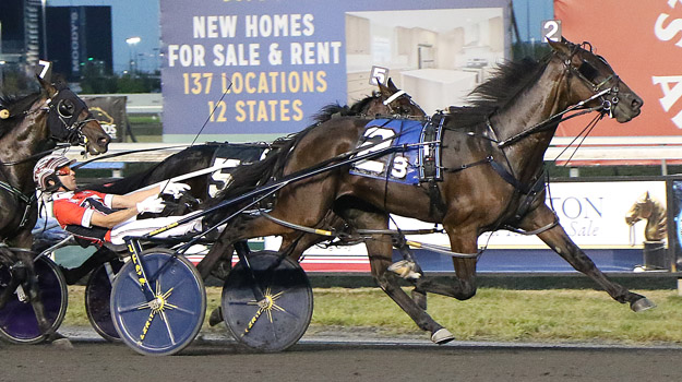 Owner Jacobs said the $50,000 yearling started slow but got better under the supervision of Chris Ryder. “They’re never cheap, but I do a lot of research and I try to find one that doesn’t always command [a big price]. Especially a pacer – trotters are [mostly] $200,000, so I try to find one underneath $100,000 and usually I’m successful. [This colt] keeps getting better.”