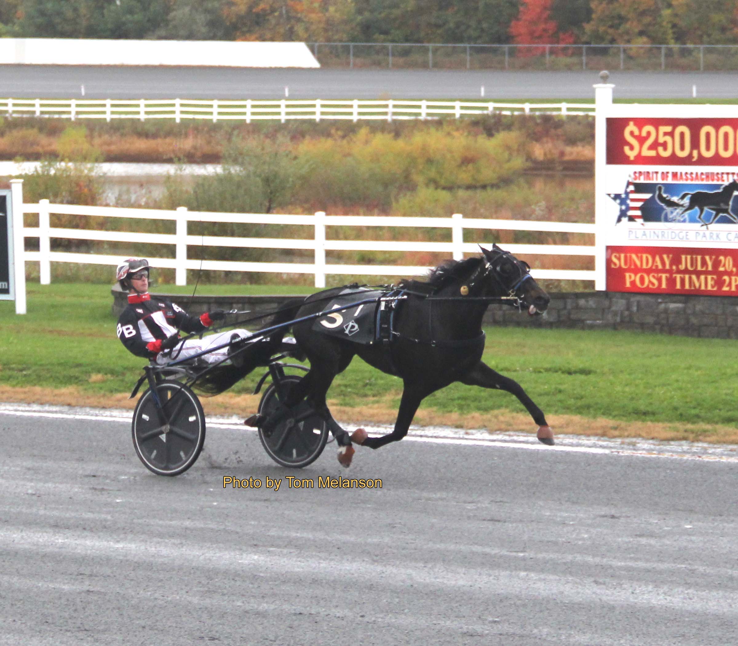 Plainville, MA — Heavy morning rains cleared just before post time at Plainridge Park on Monday (Oct. 20) as the third harness racing leg of 2-year-old state-bred trotters and pacers took the track for their share of the $3.2 million Massachusetts Breeders Stakes.