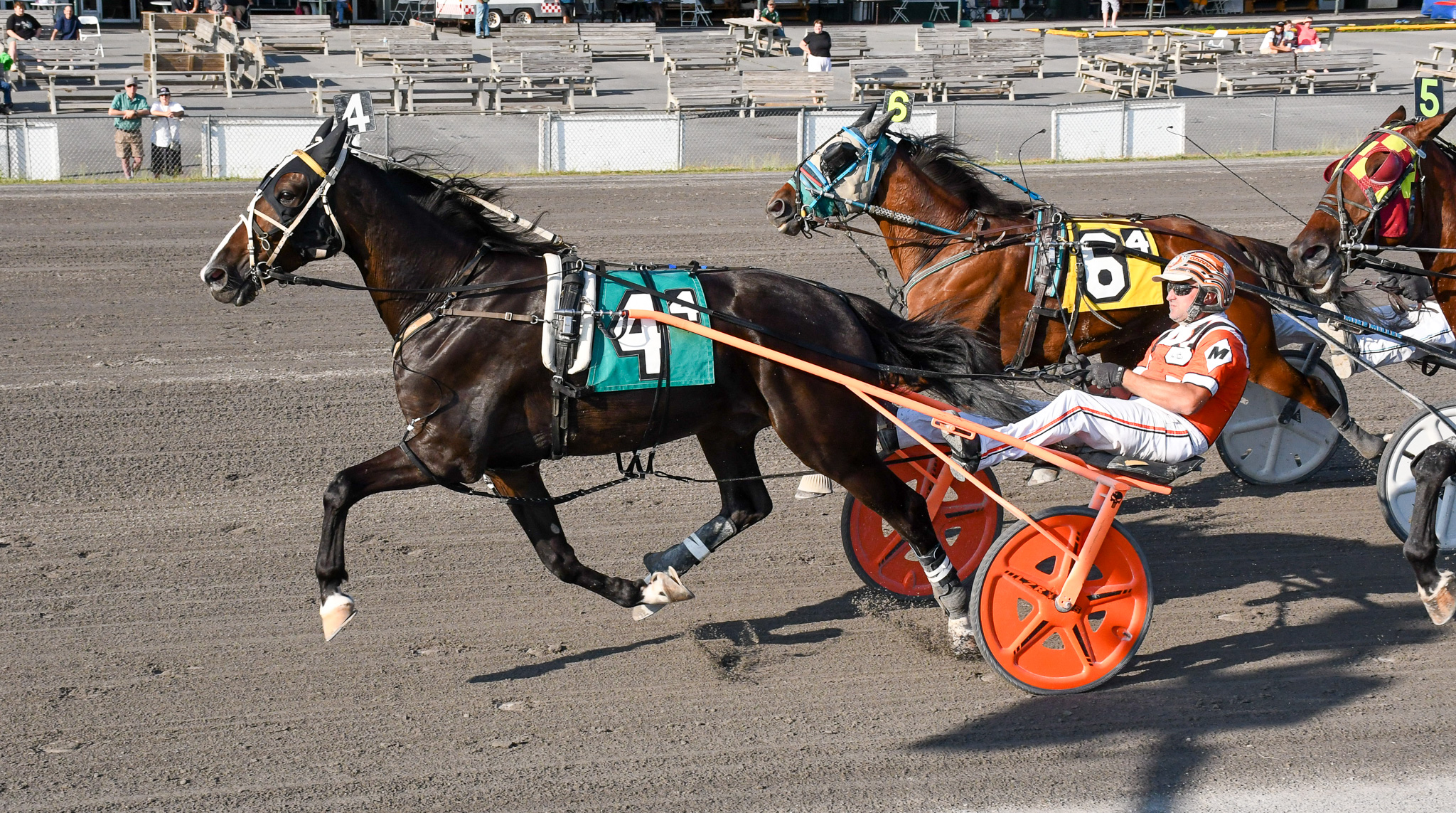 Crazy Crown (John MacDonald) captures the $6,500 featured harness racing trot at Vernon Downs on Friday (July 18).