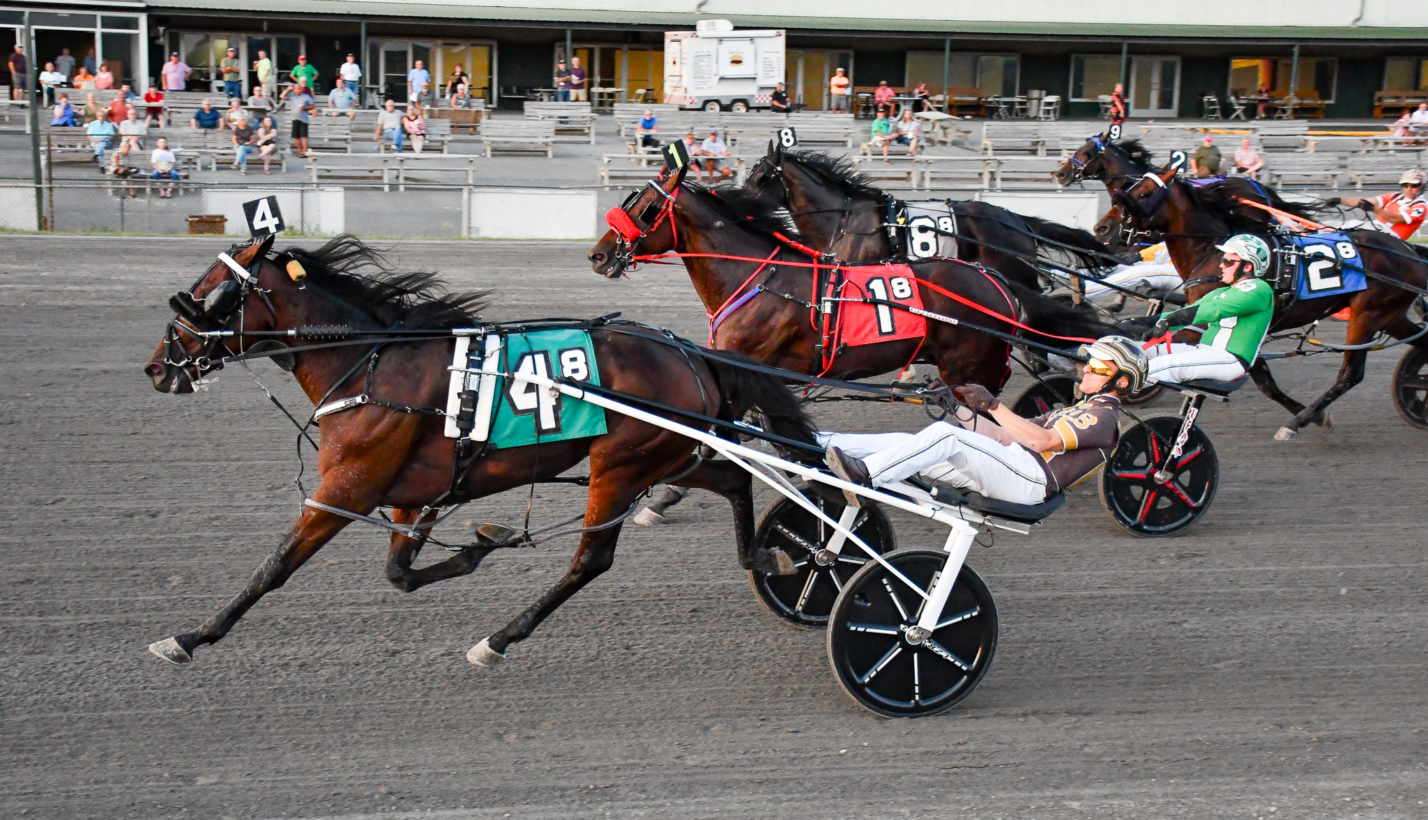 Smoken Bob (Ridge Warren) takes the Shari, Carol, and Howard (Sr.) Okusko Memorial Pace.  He is owned by Chris and trainer Dale Lawton)