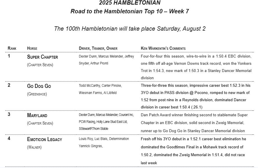 Super Chapter & Go Dog Go 1- 2 in Week 7 of Ken Warkentin’s Road to the Hambletonian Presented by FanDuel.