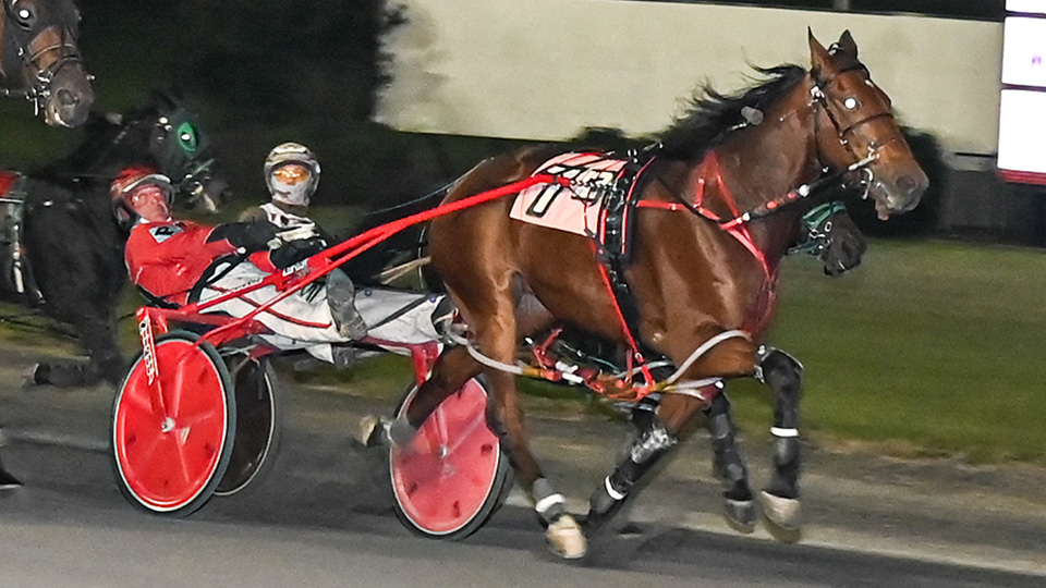 In line to Roger Plante Jr., Layton Hanover landed in fourth behind a :26.3 first quarter before commencing his uncovered ascent into Winbak Willy T (driven by Lucas Myers) approaching the :54.4 half. The two dueled past three-quarters in 1:22.3 before Layton Hanover seized the lead turning for home, and the 6-year-old Captaintreacherous-Livin Life gelding narrowly held off a pair of closers in runner-up R N B Band (Trae Porter) and third-place finisher A Major Attitude (Justin Walters) to score his second consecutive win.