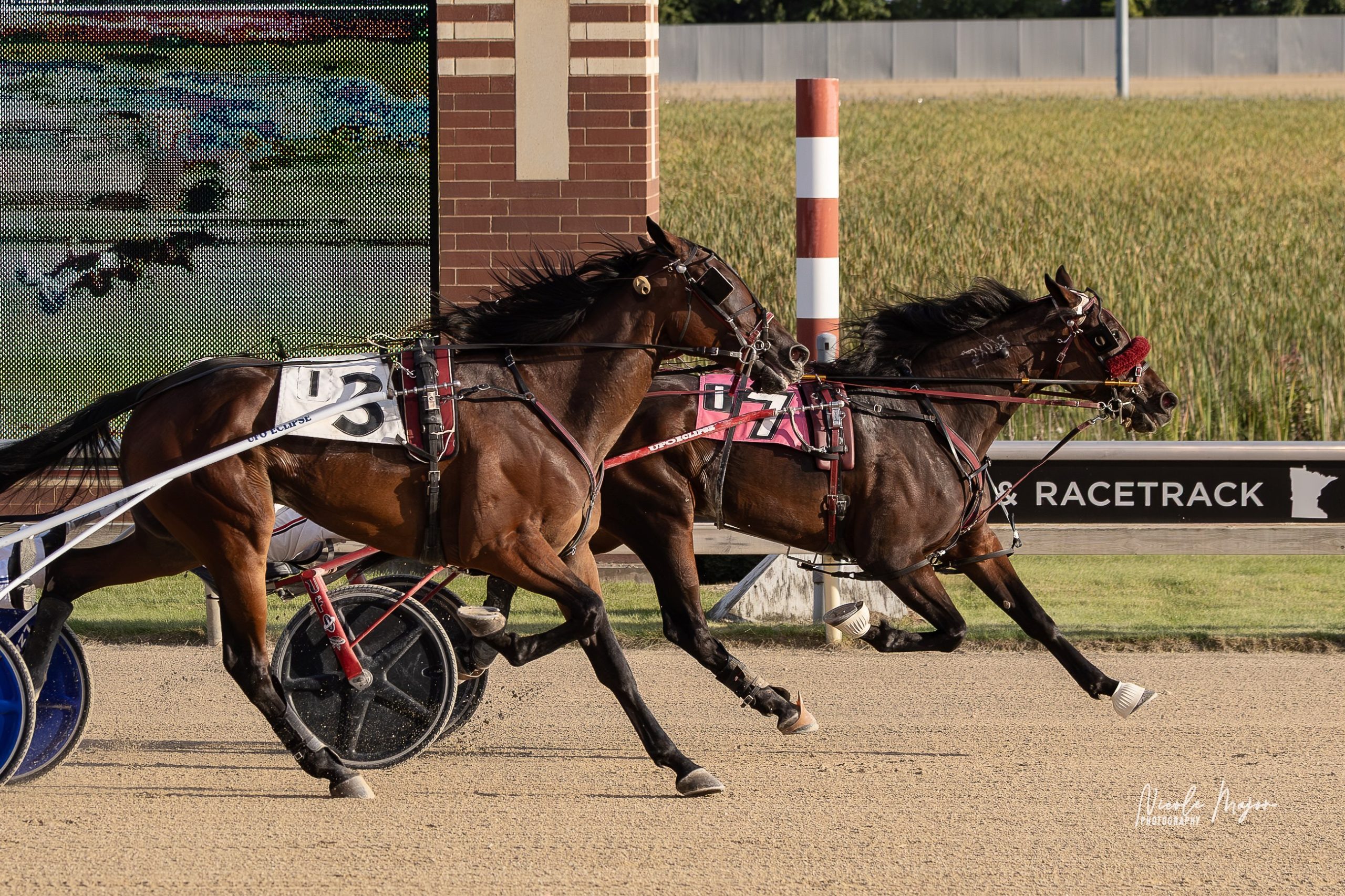 Columbus, MN – Lexus Markus (Amigo Hall) stole the spotlight at Running Aces on Sunday night (September 7) with an impressive late rally to gun down front running favorite Escaper in the final stride of the $17,000 Open Handicap trot which was the featured event of the night.