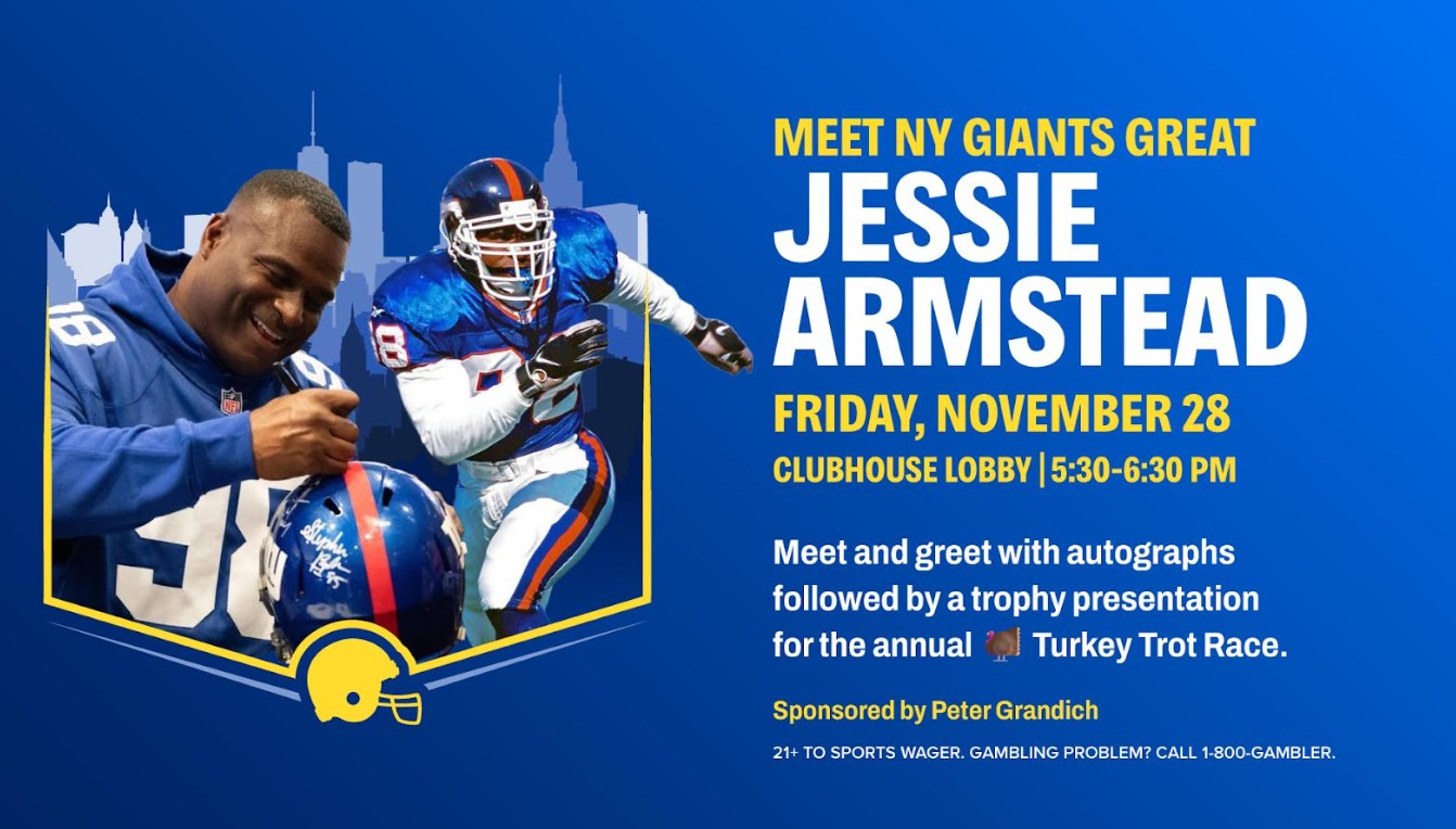 Armstead will sign autographs and meet fans from 5:30-6:30 in the Clubhouse before doing a TV interview and co-presenting the race five “Turkey Trot.”