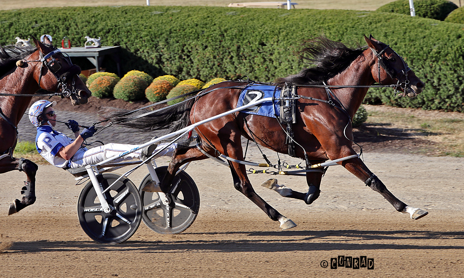 The second $17,500 split, Jurassic Hattie (Brett Miller) took no prisoners and crushed her five foes by 8 lengths. The winning time of 1:52.1 established a new stakes record.