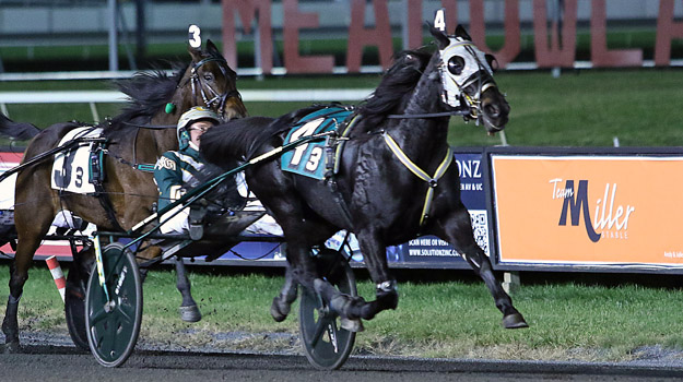 EAST RUTHERFORD, NJ – Chris Ryder’s sophomore filly icon Miki And Minnie (Always B Miki) trounced older competition as the decisive harness racing favorite in the $175,000 Grade 2 FanDuel Championship Mare Pace on Saturday (Nov. 15) at The Meadowlands. M-M’s Dream won earlier on the card in her Big M swan song in the $175,000 Grade 2 FanDuel Championship Mare Trot.