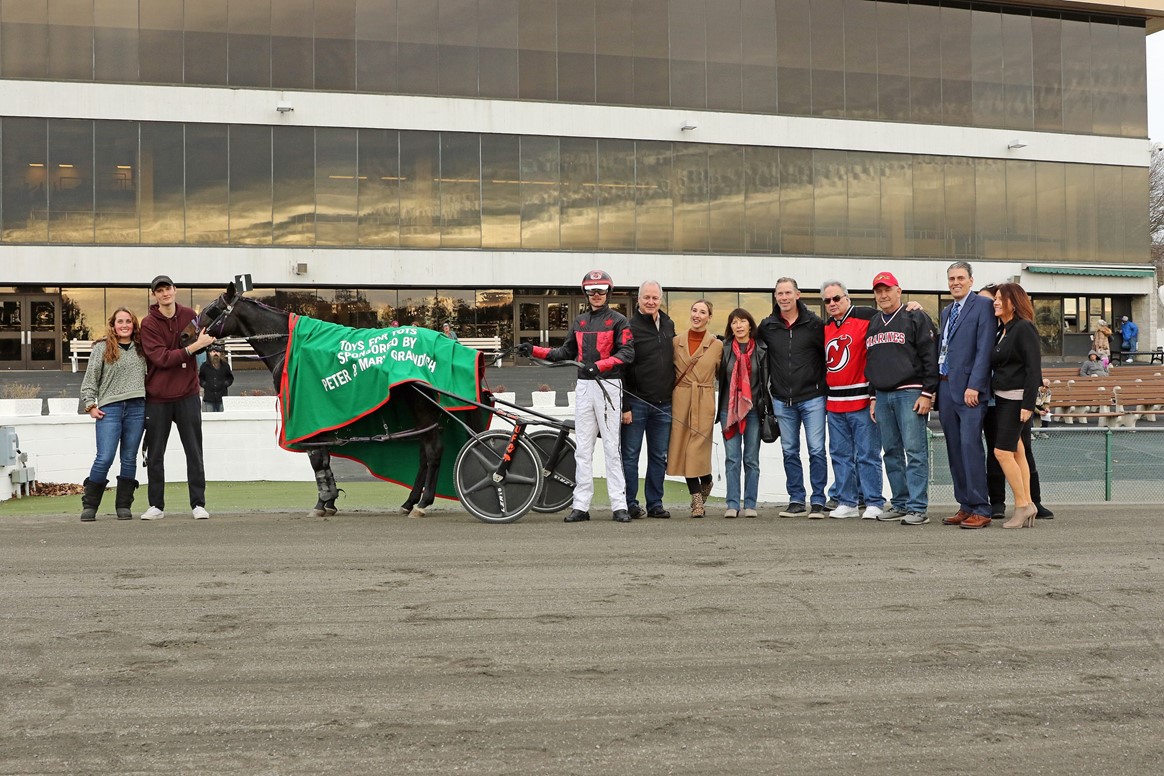 Freehold, NJ — Freehold Raceway hosted a special race on Saturday (December 4), in honor of the Toys for Tots drive, sponsored by Peter and Mary Grandich. The Toys for Tots Pace, for TrackMaster-conditioned harness racing pacers, featured all drivers under the age of 30.