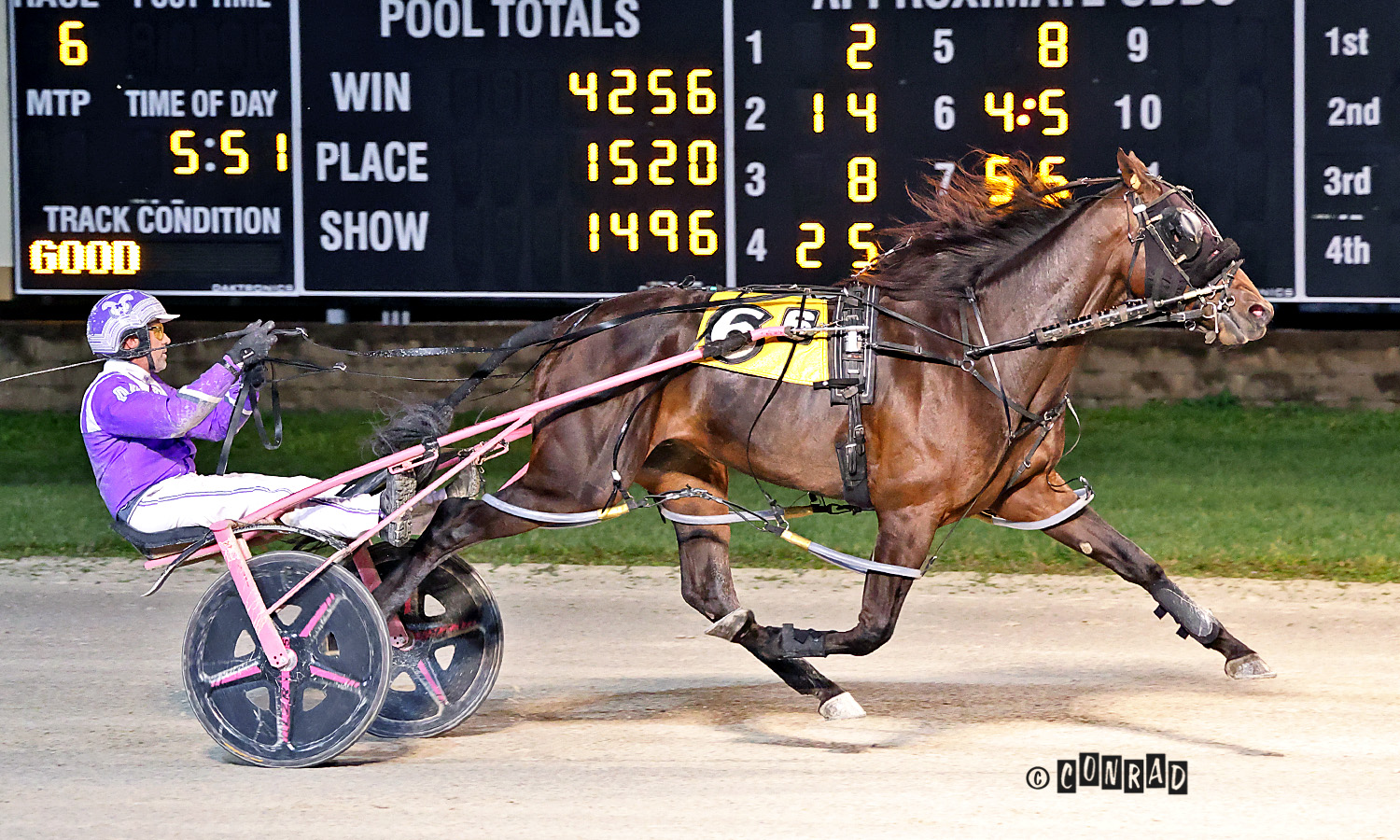 The second division saw trainer/driver Pat Mellow, Jr. grind out a first-over victory with Draw Off in 1:52.4.